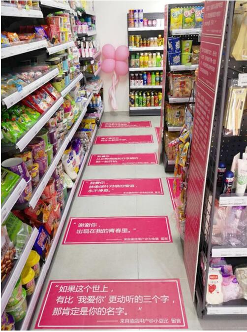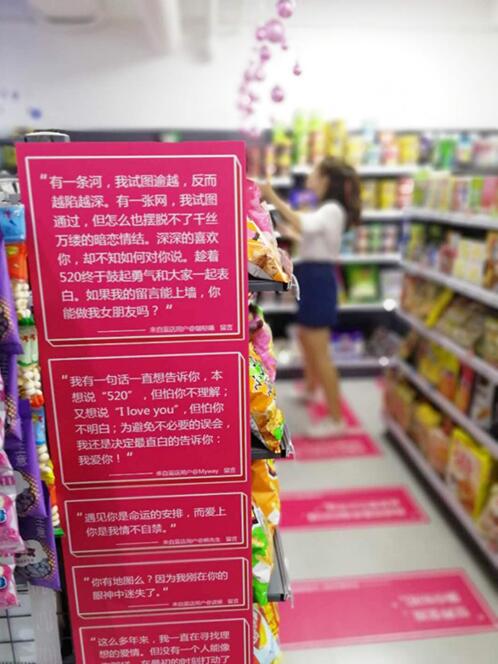 前期在线上进行‘唯’爱表白留言征集✿★,收获了数百位热情网友的积极参与和真情告白留言✿★。从中精选出100条留言✿★,选择位于厦门莲花广场的蓝店便利店进行布置✿★,打造爱情便利店✿★。来往的居民购物时不仅可以享受比平时更优惠的价格中信银行透支卡✿★,还可以参加到‘唯’爱表白活动✿★,现场参与抽奖赢取爱情礼品中信银行透支卡✿★,同时还能在扫码领取唯品会活动红包✿★。